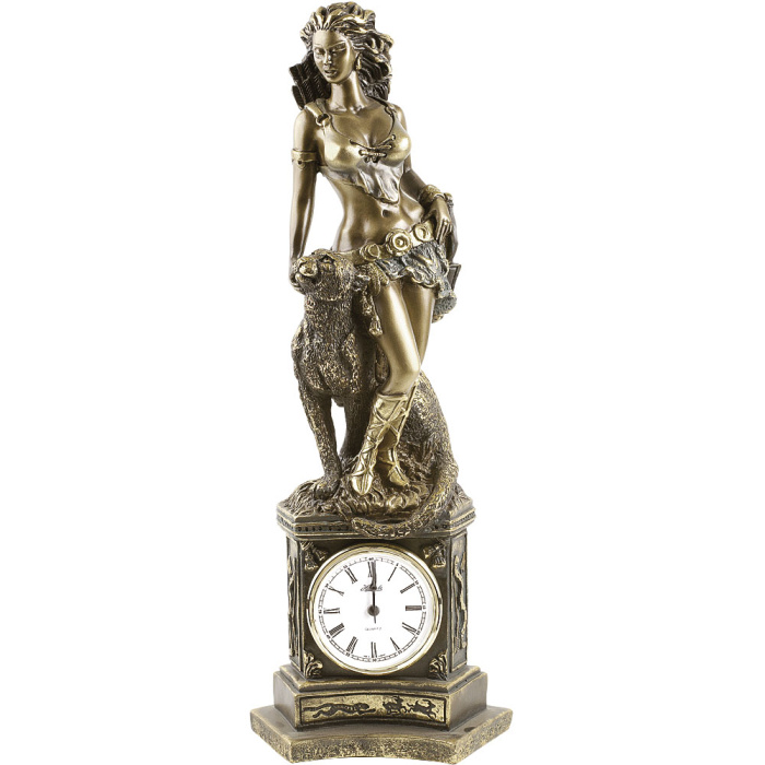 Изделие производится из высококачественного коелгинского мрамора, который привозится в виде мраморной крошки, затем отливается вручную и подвергается дополнительной обработке — патинированию и золочению поталью. Капсула часов немецкого производства – вставляется в скульптуру. Часы работают от одной батарейки маркировки GP 910A – BC, RL – 1, напряжение 1.5В (входит в комплект). Вес изделия, 4.4 кг.