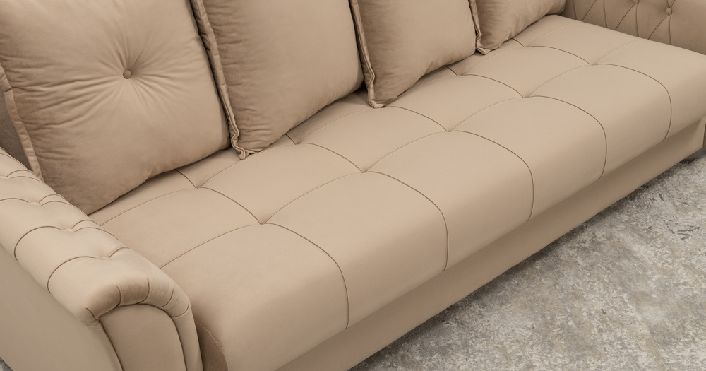 Декоративная отстрочка, защипы и утяжки на сиденье; защипы и утяжки с пуговицами на подлокотниках; утяжки с пуговицами на приспинных подушках