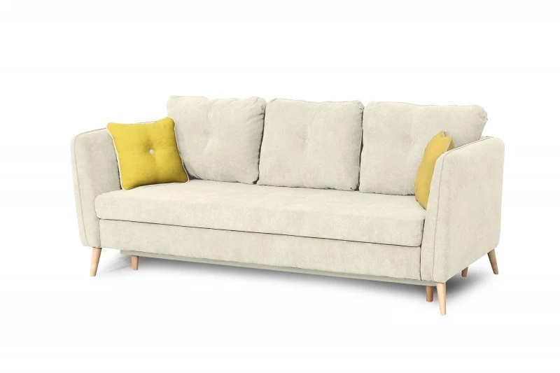 Диван-кровать АНТАЛИЯ 2 выполненный в скандинавском стиле принесет уют и спокойствие в вашу любимую гостиную. Высокие ножки из массива березы придают дивану визуальную лёгкость, декоративные утяжки с пуговицами на подушках украшают изделие, а механизм трансформации "Тик-так" превращает диван в полноценное спальное место размером 196х151 см. Имеется вместительный бельевой ящик.