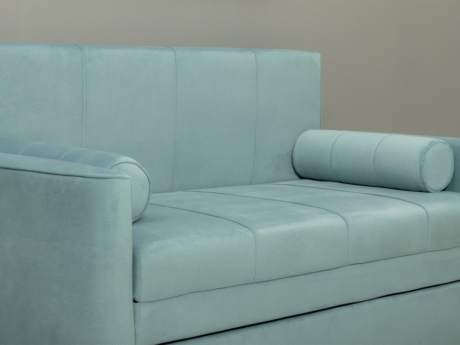 Диван-кровать Мелани Р (120) - компактный современный диванчик. Скругленные подлокотники с кантами подчеркивают эргономичность модели. Простой и надежный механизм трансформации на каждый день обеспечит удобным спальным местом ребенка или подростка. Может использоваться в качестве гостевого спального места для взрослого. Размер сп. места 195 х 120 см, есть небольшой бельевой ящик. Диван выполнен в мягком фактурном велюре. "Пальчиковый эффект" на ткани обивки выражен средне. Опоры - цвет черный, круглые, высота 25 мм., выполнены из высококачественного пластика. Прочность конструкции ножек обеспечена ребрами жесткости и внутренним креплением под фурнитуру.