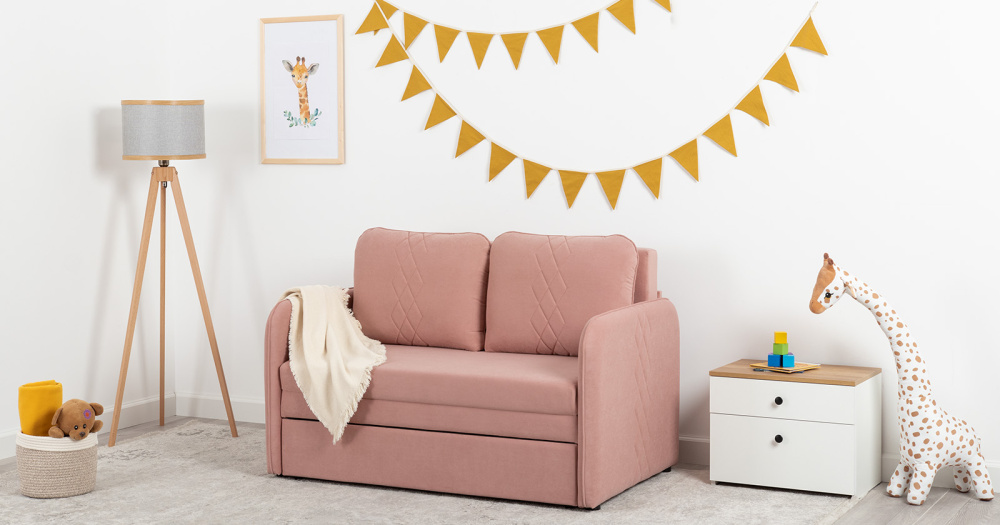 Стильный компактный диван для детской и гостиной. При своих скромных размерах он трансформируется в полноценное спальное место для детей и подростков. Лаконичный дизайн в виде декоративной отстрочки подчеркивает фактуру велюра, а небольшие размеры позволят разместить его в любом пространстве.