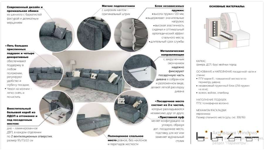 •    Сиденье и Спинка : Независимый пружинный блок, ППУ.