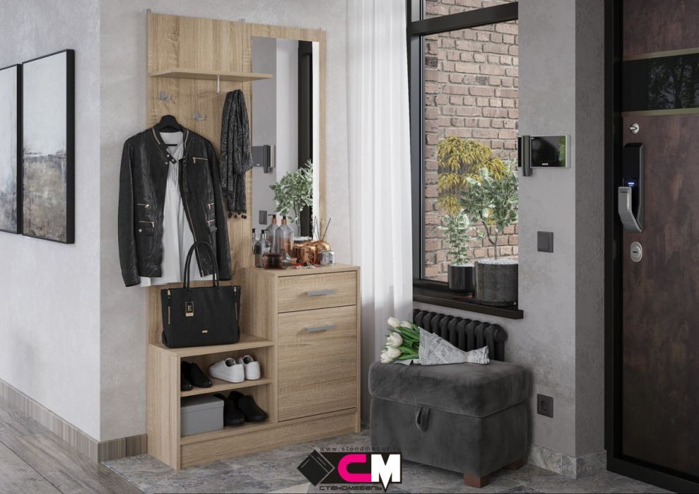 Прихожая Дебора позволит рационально использовать всю полезную площадь даже небольшого помещения. Три крючка на вешалке предназначены для размещения верхней одежды. Антресольная полка пригодится для головных уборов и других всевозможных аксессуаров. Нижнее открытое отделение с полками можно использовать для хранения обуви всей семьи. Прихожая Дебора изготовлена из высококачественных материалов и фурнитуры, что позволит гарнитуру служить вам долгие годы.