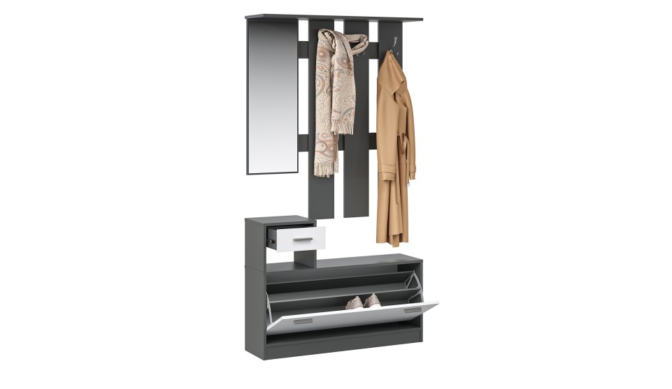 Интер – современная прихожая в стиле минимализм - минимум декора, максимум функционала. Компактная и вместительная, с небольшой глубиной – она поможет правильно организовать пространство в небольшом помещении. Прихожая включает в себя необходимые модули: вешалка с крючками, вместительные обувницы, выдвижные ящики для мелочей, зеркало