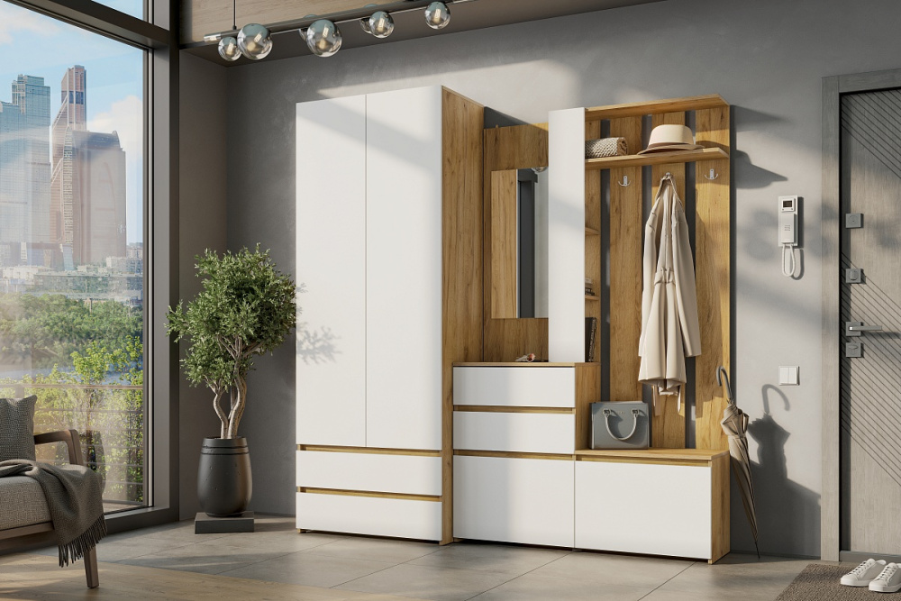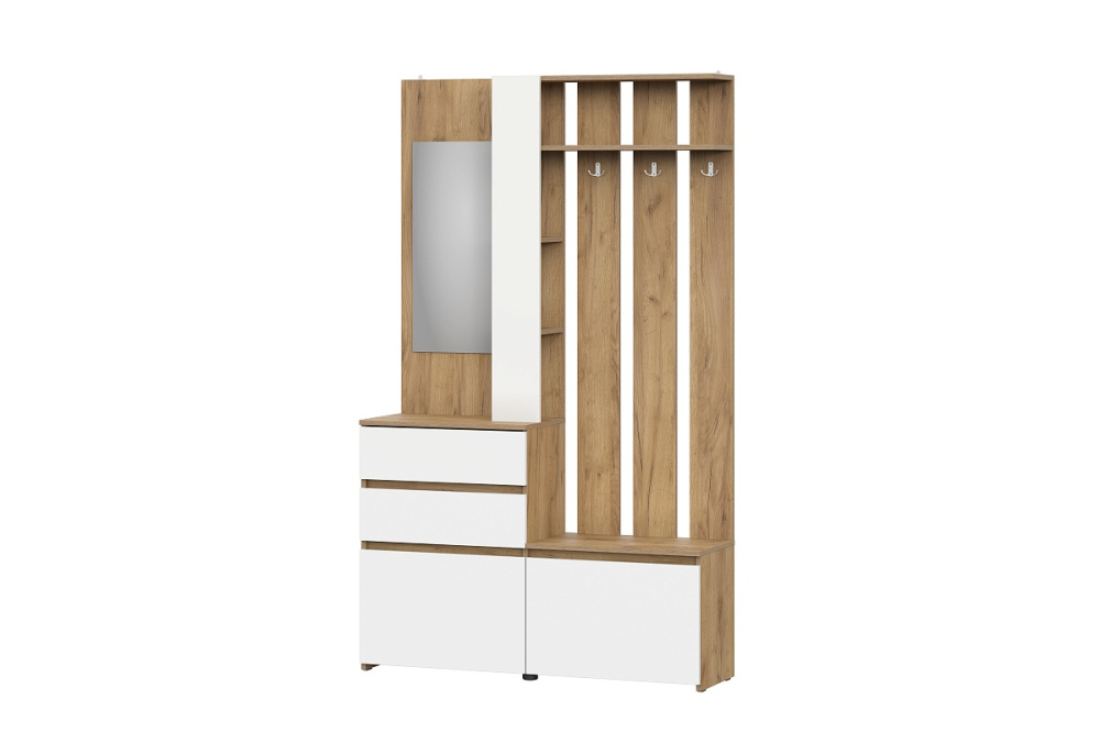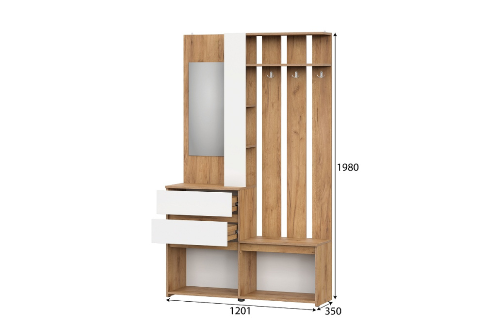 Вешалка с зеркалом "Некст" Дуб Золотой/Белый