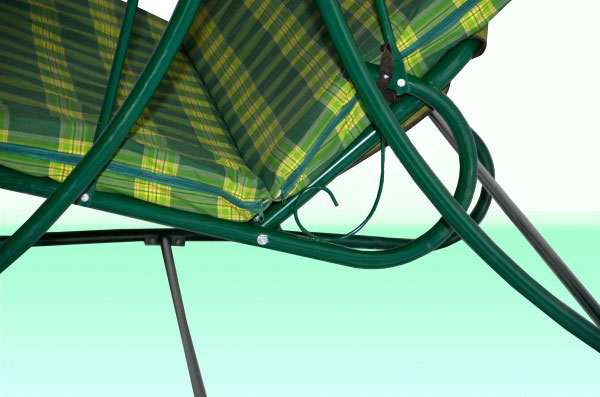 Предусмотрена возможность регулировки наклона спинки при помощи застежек, вплоть до положения лежа. Материал набивки подушек холлофайбер. Поставляются в комплекте с тентом и подушками. Грузоподъёмность, кг: 210.