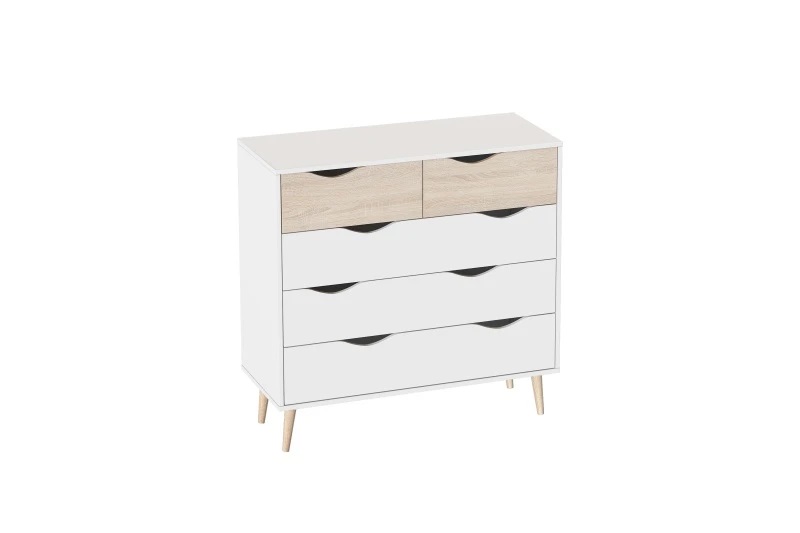 Комод "Соната" не только функционален, но и стильно выглядит, что позволит ему гармонично сочетаться с другой мебелью в вашем доме. Комод изготовлен из качественных материалов, что гарантирует его долговечность и сохранение первозданного вида на долгие годы. Упорядочить хранение аксессуаров, одежды и белья помогут пять выдвижных ящиков с фасадами, декорированными вырезными ручками.