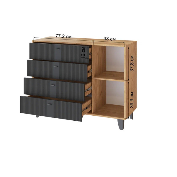 Комод Катрин - 13 Дуб крафт золотой/Карбон вулкан