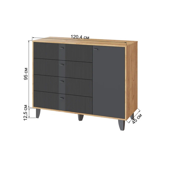 • Комод с двумя секциями: отделение с распашным фасадом и выдвижными ящиками