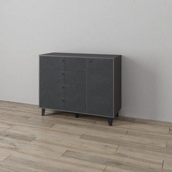 • Комод с двумя секциями: отделение с распашным фасадом и выдвижными ящиками