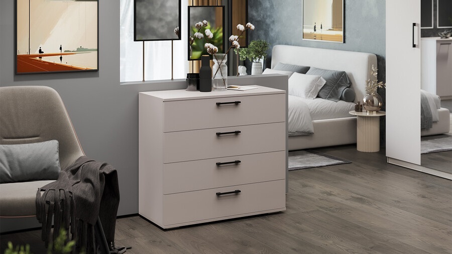 • Материал каркаса: ЛДСП • Материал кромки каркаса: ПВХ • Материал ручек: Пластик • Материал фасада: ЛДСП • Количество ящиков: 4