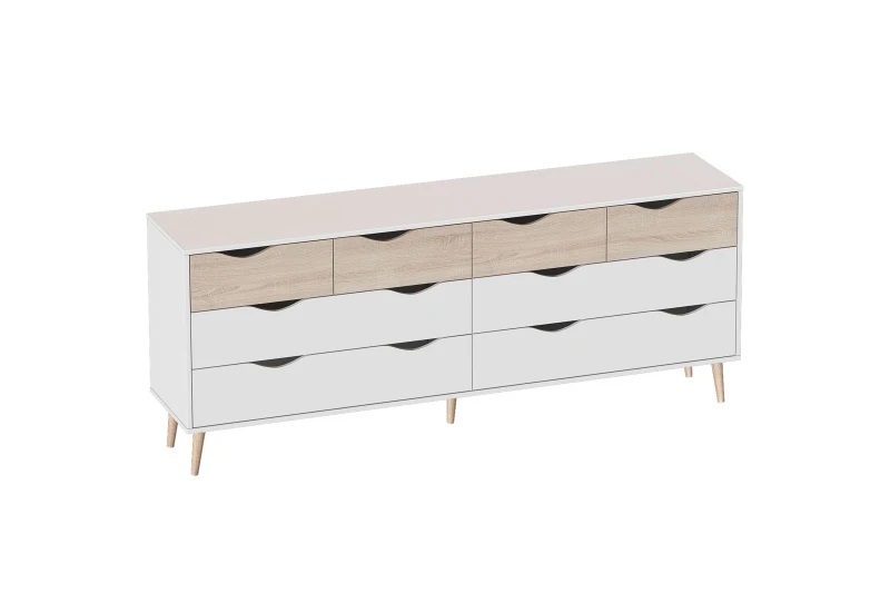Комод "Соната" не только функционален, но и стильно выглядит, что позволит ему гармонично сочетаться с другой мебелью в вашем доме. Комод изготовлен из качественных материалов, что гарантирует его долговечность и сохранение первозданного вида на долгие годы. Упорядочить хранение аксессуаров, одежды и белья помогут восемь выдвижных ящиков с фасадами, декорированными вырезными ручками.