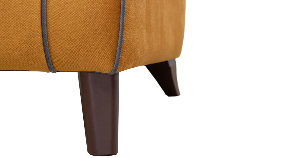 Декоративный кант на кресле, защипы на декоративной подушке, пуговицы на спинке.
