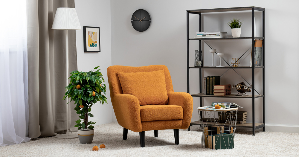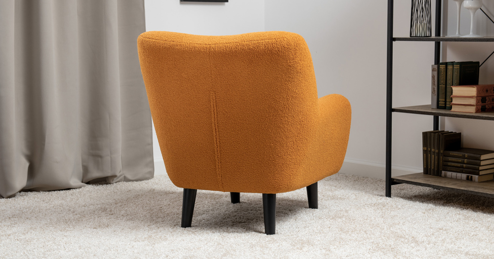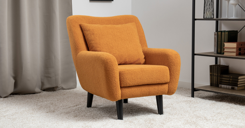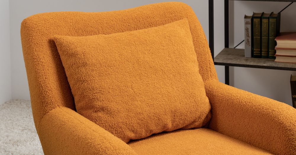 Кресло Шон станет вашим любимым местом для отдыха. Мягкое кресло с удобной спинкой даст вам расслабиться и отдохнуть. Благодаря небольшим размерам кресло подходит для многих современных квартир-студий или небольших комнат. Ткань букле делает кресло особенно уютным и мягким. Приспинная подушка в цвете кресла.