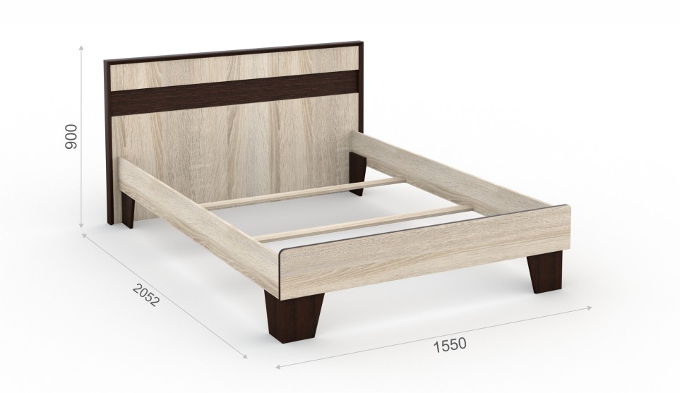 Кровать Эшли - выполнена в стиле минимализм: предельная лаконичность и простота, строгие геометрические очертания. Изголовье выполнено из ЛДСП с декоративной вставкой темного цвета, по периметру - контрастный профиль из МДФ. Сочетание темных ножек трапецевидной формы и кромки изножья цвета венге со светлым корпусом кровати придает кровати легкость и выразительность.