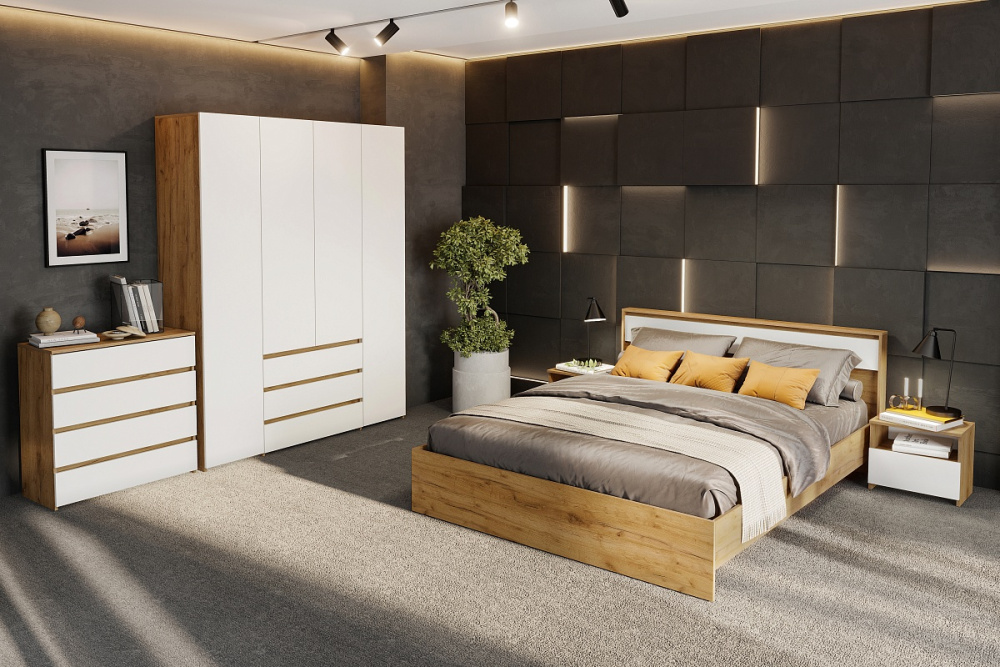 Кровать 160 "Некст" Дуб Золотой/Белый
