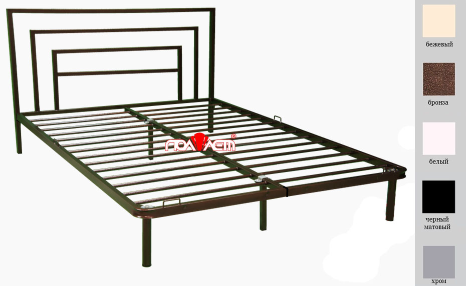 Основание кровати состоит из продольных металлических реек и перемычек, шаг расположения которых, согласуется с шагом пружин матраца на зависимом пружинном блоке.