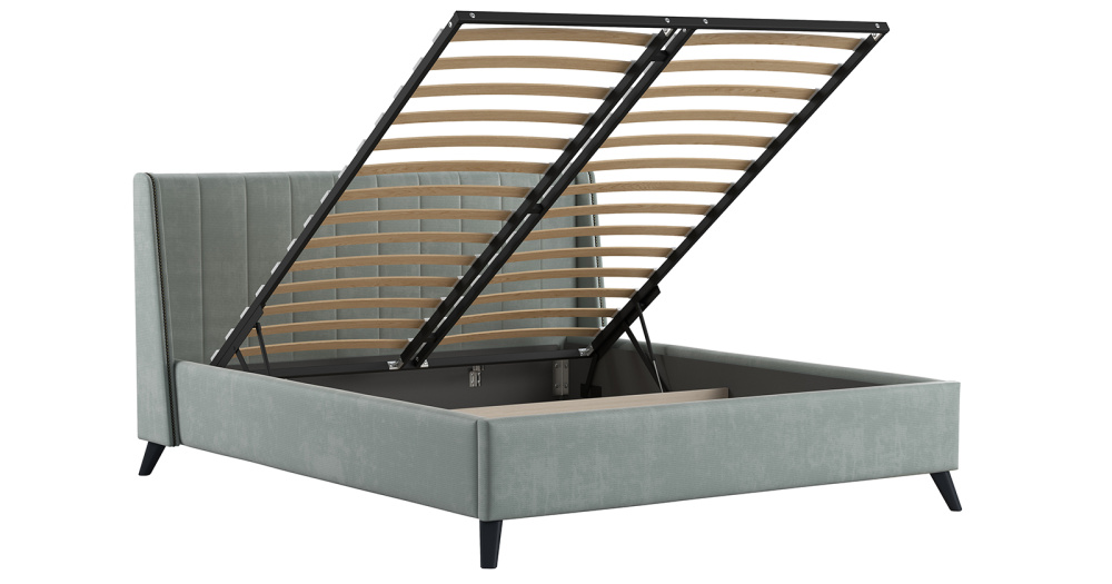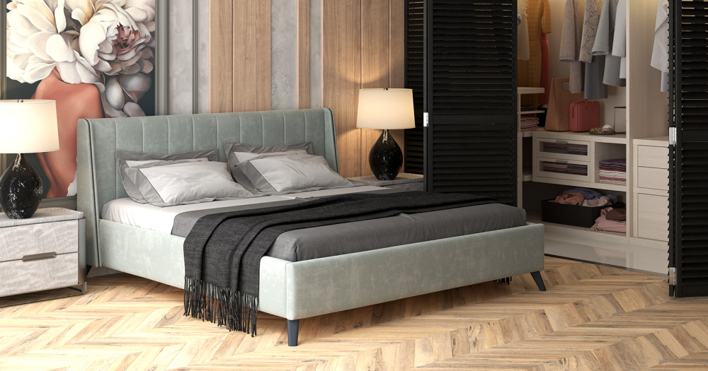 Жесткое кроватное дно из МДФ 10 мм. Задняя стенка изголовья выполнена в тех. ткани (спанбонд).