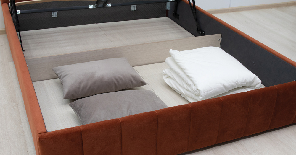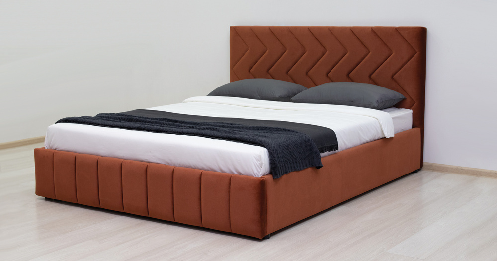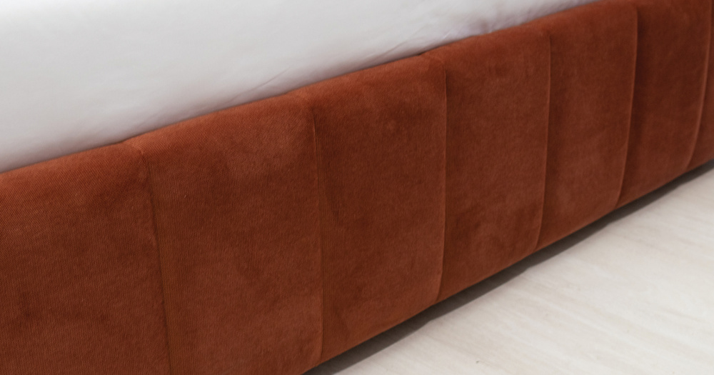 Жесткое кроватное дно из ЛДСП 16 мм. Задняя стенка изголовья выполнена в тех. ткани (спанбонд).