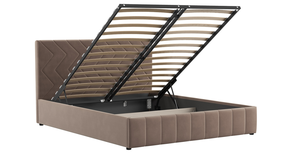 Жесткое кроватное дно из ЛДСП 16 мм. Задняя стенка изголовья выполнена в тех. ткани (спанбонд).