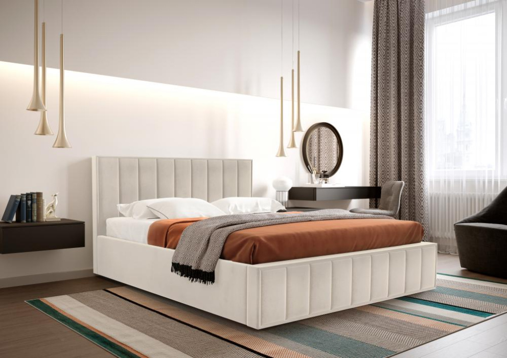 Кровать в мягкой обивке “Вена” является воплощением элегантной изысканности.