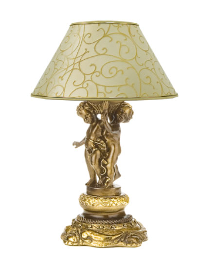 Абажур с нижним способом крепления, имеет конструкцию, основой которой служит металлический каркас с применением технологии порошковой покраски и креплением под цоколь E27(стандартный – Ø 4 см). В отделке используется Голландский пластик обтянутый тканью - жаккард. Абажур декорируется золотым молдингом. Мощность ламп: 60W