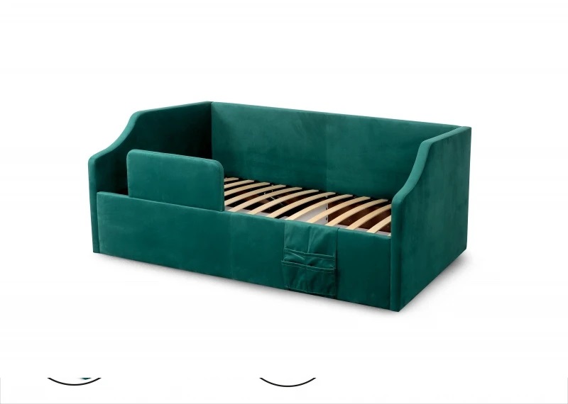 Кровать “Дрим” - это идеальное решение для детской комнаты. Мягкая обивка из приятного на ощупь, гипоаллергенного велюра обеспечивает комфорт и уют во время сна.