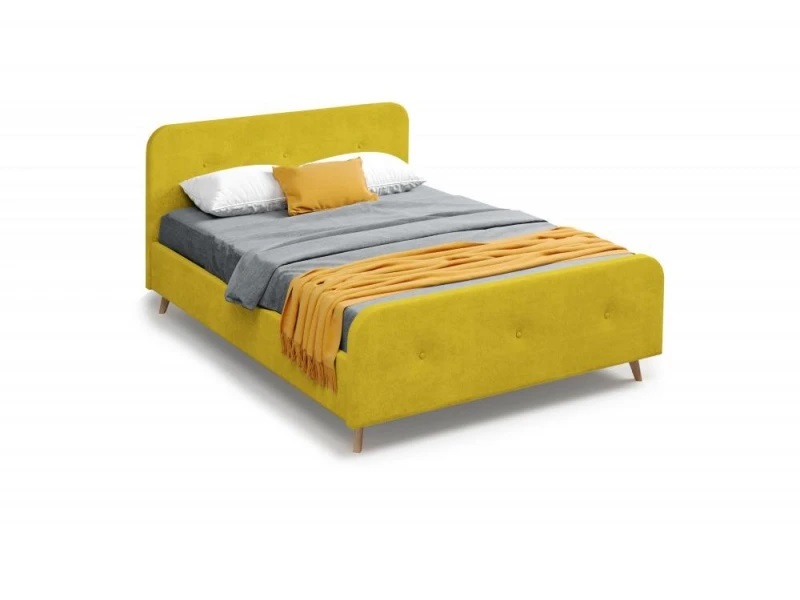 Изголовье имеет закругленный силуэт, обтянут велюровой тканью с пуговицами, что обеспечивает дополнительную мягкость и уют. Высокие стильные ножки из массива березы создадут ощущение легкости и воздушности.