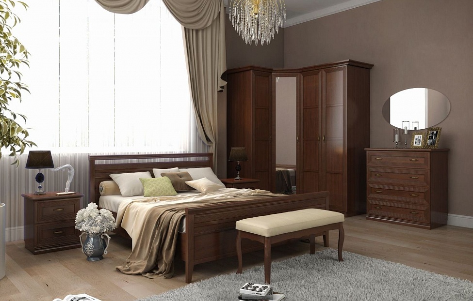 Композиция №4 спальни "Адажио" – гармоничное сочетание изящества классики и комфорта. Фасады мебели покрыты патиной, которая создает визуальный эффект состаренного дерева и добавляет композиции роскоши. Удобная угловая шкафная секция позволит разместить разместить все необходимое, одновременно сэкономив пространство.