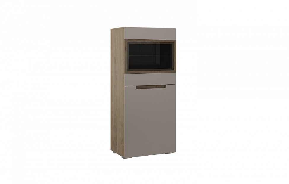 Отделение за стеклом укомплектовано стеклянной полкой, а за глухим фасадом - полка из ЛДСП;