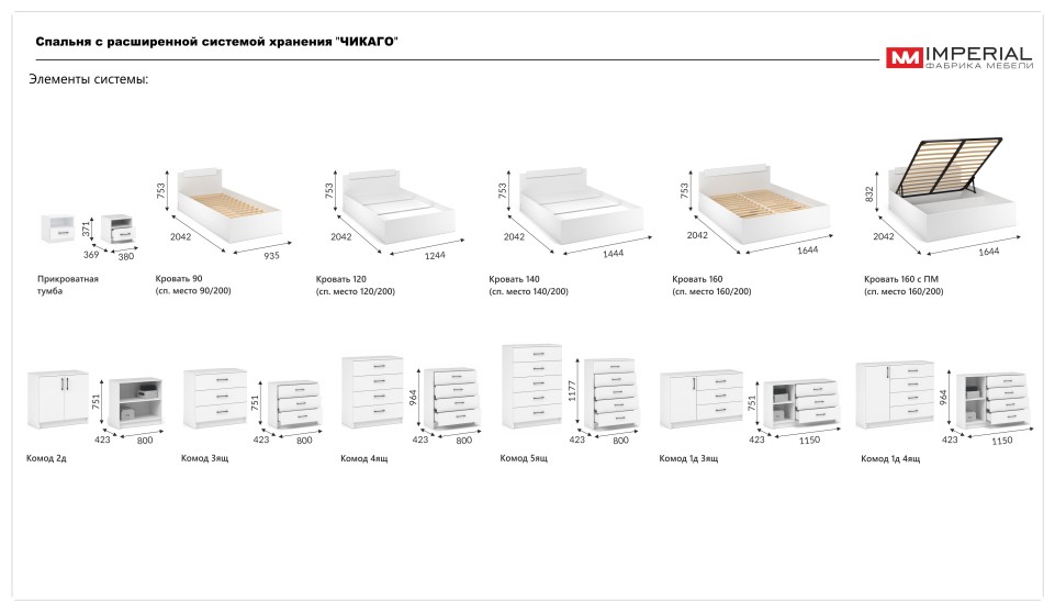 Кровать 160 "Чикаго вайт" (с подъемным меанизмом)