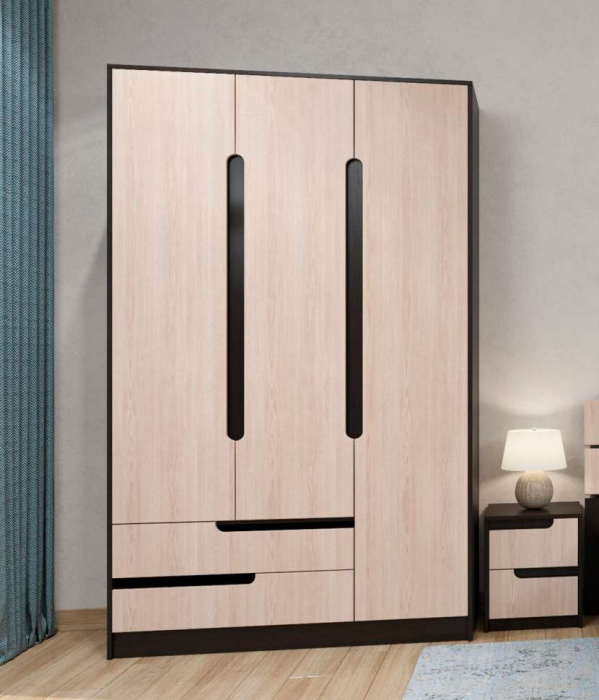 Шкаф трехдверный "Гавана" Дуб молочный / Венге