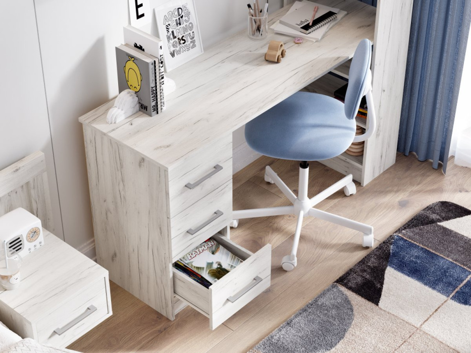 Интересное дизайнерское и конструкторское решение - Письменный стол Гранд, совмещает в себе открытую систему хранения и три закрытых выдвижных ящика.