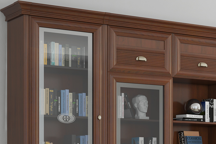Изысканная и респектабельная, Композиция №3, мгновенно представит хозяина коллекции как человека уважаемого и солидного. Это композиция для тех, кто ценит высокий стиль и комфорт. Часто случается так, что в библиотеке хранят не только книги, но и документы, памятные мелочи, коллекционные изделия. Мы предусмотрели это и поэтому в Композиции №3 библиотеки "Изотта" Вы можете выбрать любые варианты хранения: под стекло, открытые полки, закрытые ниши.