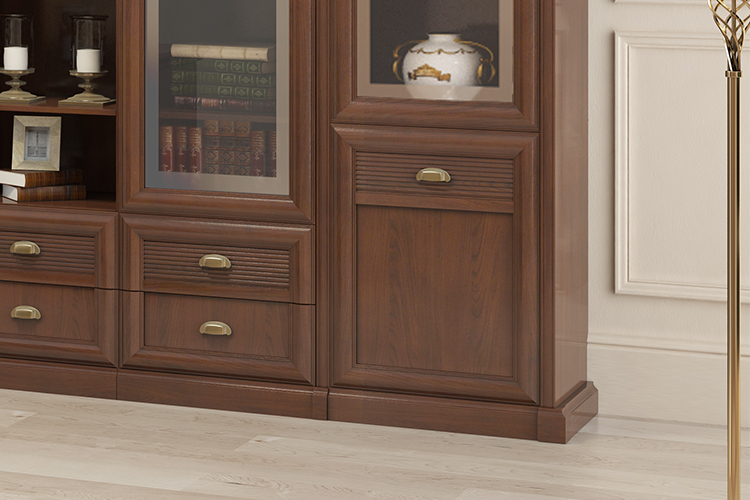 На фасады вручную нанесена патина , поверх патины- два слоя итальянского лака , что обеспечивает идеальную гладкость и благородный блеск.