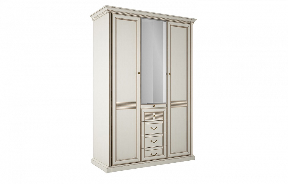 Шкаф комбинированный Изотта 7, выполненный в светлом цвете Валенсия", поставляется с тремя полками и двумя штангами. Дверцы шкафа – глухие с зеркальной вставкой по центру.