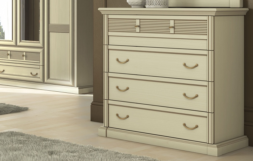 На фасады вручную нанесена патина , поверх патины- два слоя итальянского лака , что обеспечивает идеальную гладкость и благородный блеск.