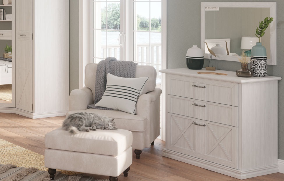 Спальня в классическом стиле. Кантри — одна из любимых коллекций наших клиентов. Такая мебель подойдет к интерьерам в стилях прованс, кантри или сканди. При создании этой коллекции наш дизайнер вдохновлялась самобытной архитектурой Германии с ее характерной фахверковой системой;
