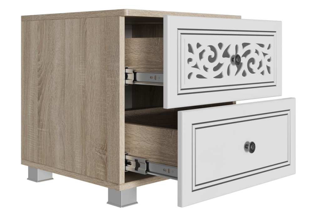 • Предметы этого гарнитура имеют высокие опоры, что значительно облегчает домашнюю уборку и позволяет размещать предметы интерьера вплотную к стене, игнорируя плинтуса.