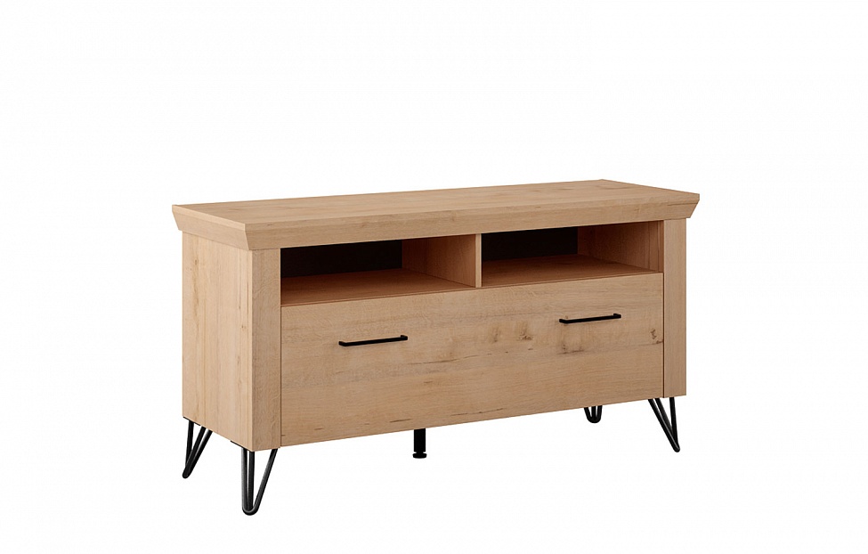 Под крышкой тумбы — открытая ниша , разделенная перегородкой, ниже -выдвижной ящик на направляющих Quadro со встроенным с демпфером Silent System.