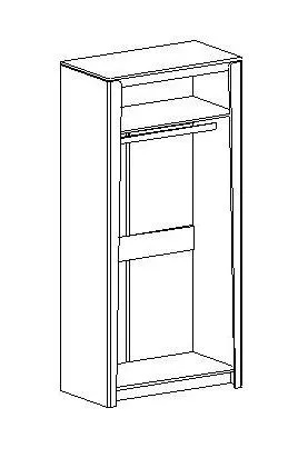 Внутреннее пространство шкафа разделено полкой на платяное с продольной стальной штангой и верхнее отделение для хранения белья. Фасады выполнены из МДФ, преимуществами данного материала являются влагостойкость, экологичность, гипоаллергенность, надёжность и долгий срок эксплуатации.