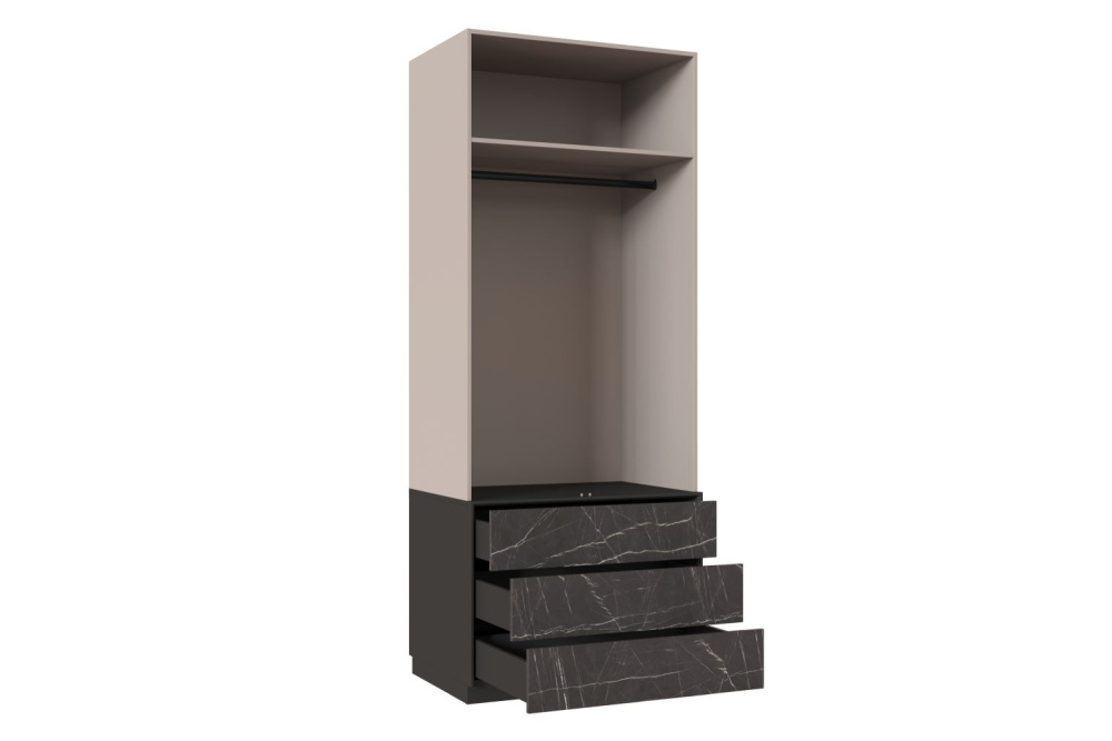 Шкаф двухдверный с одной полкой ЛДСП и тремя выдвижными ящиками;