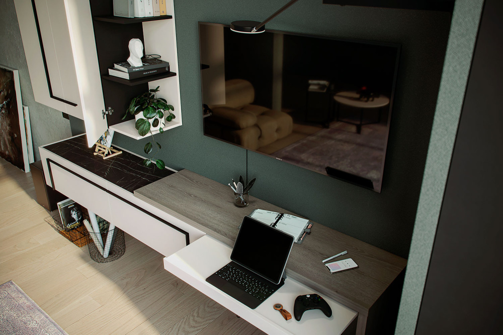 Стол приставной с выдвижной панелью и врезной USB-розеткой;