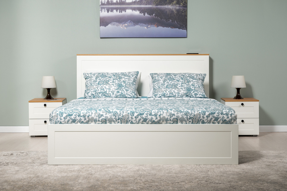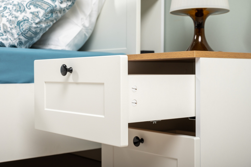 Доступна в двух цветовых решениях – белый/графит в сочетании с теплым древесным декором.