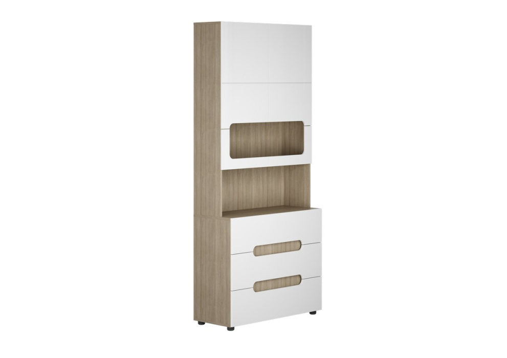 - Стеллаж условно разделен на две части: Комод и Надставка.
