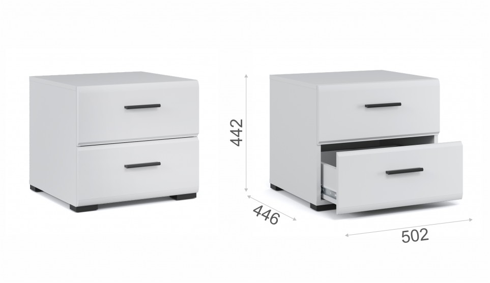 Прикроватная тумба органично впишется в интерьер современной спальни, сделает хранение вещей удобным и аккуратным. Глянцевые белые фасады High Gloss из МДФ с горизонтальной фрезеровкой делают пространство более объемным и воздушным. На поверхности тумбы можно расположить ночник, книгу, часы. Два вместительных выдвижных ящика на телескопических направляющих позволят хранить под рукой все самое необходимое – косметику, зарядное устройство, наушники. Тумба выполнена из экологически безопасных и надежных материалов.