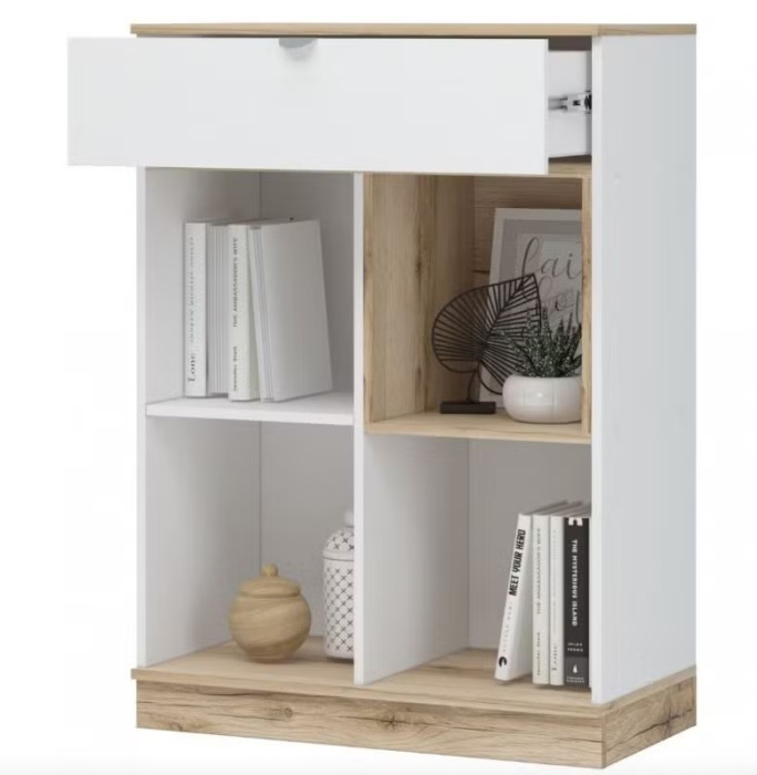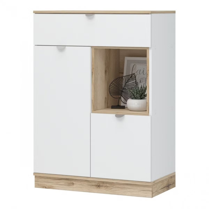 Комод Юкки КМ-800 стильное решение для современного интерьера. Белоснежный фасад с корпусом древесного оттенка создаёт интересное сочетание.