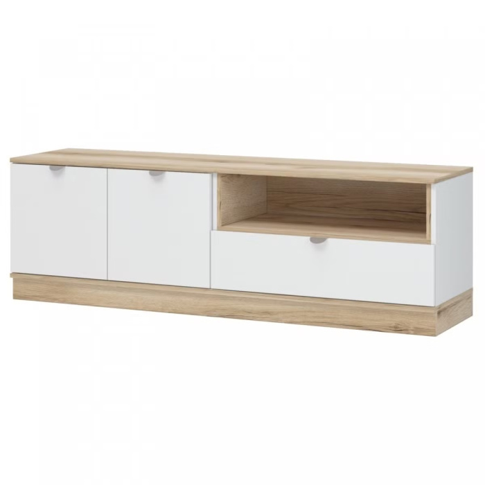 Тумба ТВ-1600 Юкки стильное решение для современного интерьера. Белоснежный фасад с корпусом древесного оттенка создаёт интересное сочетание.