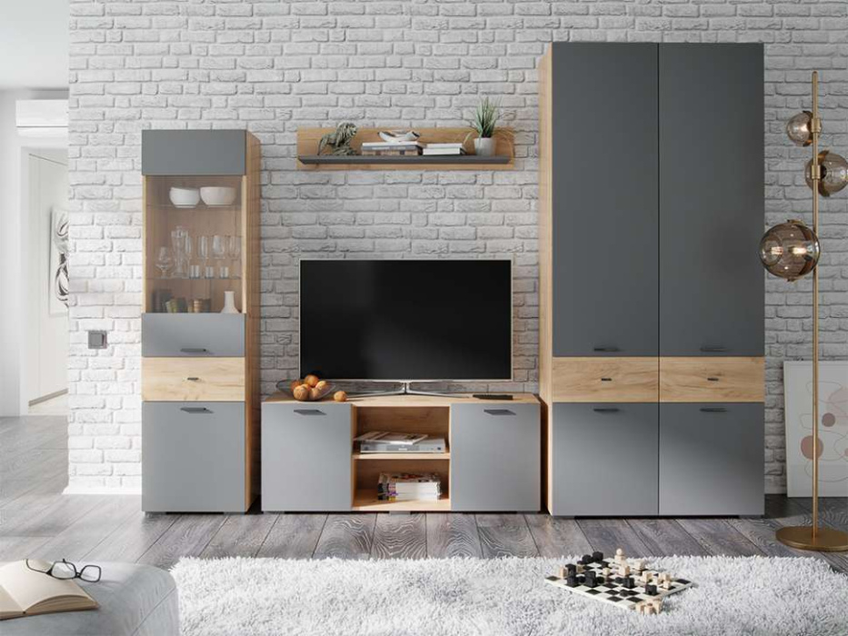 Мебель для гостиной Дублин выполнена в стиле Лофт, отличительной чертой которой является: простота, лаконичность, отсутствие декоративных элементов и излишеств, сочетание текстур бетона и дерева.