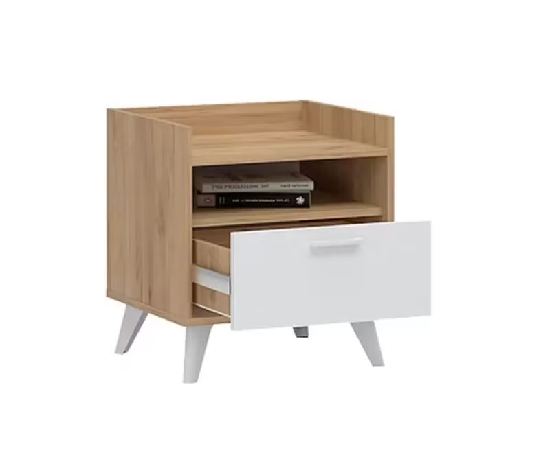 Тумба прикроватная Ирис ТБ-01 стильное решение для современного интерьера. Белоснежный фасад с корпусом древесного оттенка создаёт интересное сочетание.
